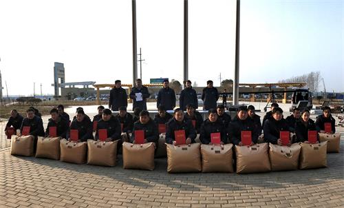 兰考县鼎丰木业有限公司员工领取荣誉证书及奖金、奖品